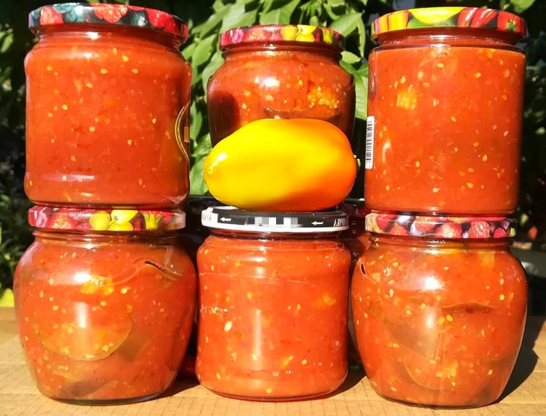 1.Помідори, очищений від насіння солодкий та гіркий перець, часник пропустіть через м’ясорубку.
