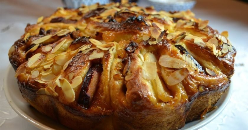 Пиріг готовий до випічки. Залишається змастити його жовтком, посипати мигдалем і відправити в розігріту до 200 градусів духовку на 7 хвилин. Потім зменшіть температуру до 180 градусів і готуйте його хвилин 30. Розкішний французький пиріг готовий.