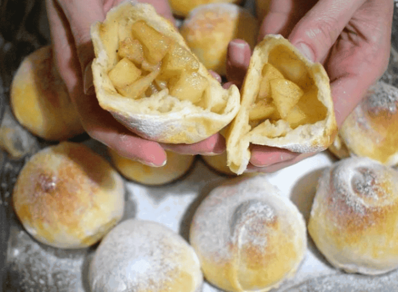Яблука попередньо можна протушити на сковороді з цукром і шматочком вершкового масла, тоді начинка стане м’якше і її можна буде покласти в булочки більше.