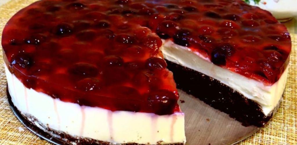 Дуже ніжний та смачний віденський пиріг з вишнею, я б навіть назвала його тортом. Він поєднує в собі контраст смаків та шарів: основа з шоколадного бісквітного коржа, середина з сирно-сметанного шару та верх із кислуватої вишні та желе. Замість вишні можна використовувати будь-які інші ягоди чи фрукти.