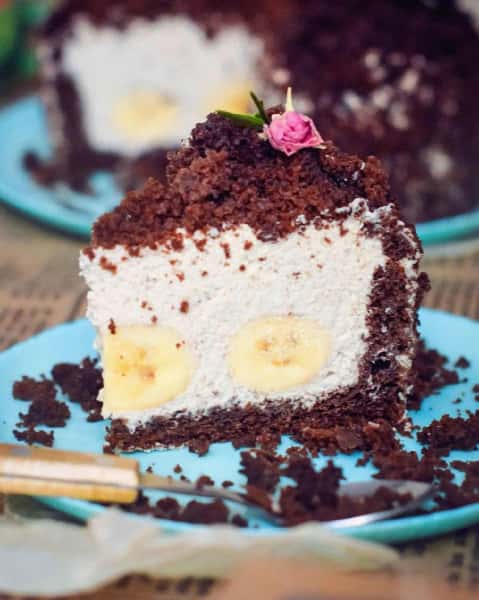 Всередині цього кондитерського дива пористий бісквіт, в ньому банани та найніжніший вершковий крем-мус. Любите такі ласощі, що тануть у роті, тоді швидше готуйте цей офігенний тортик.