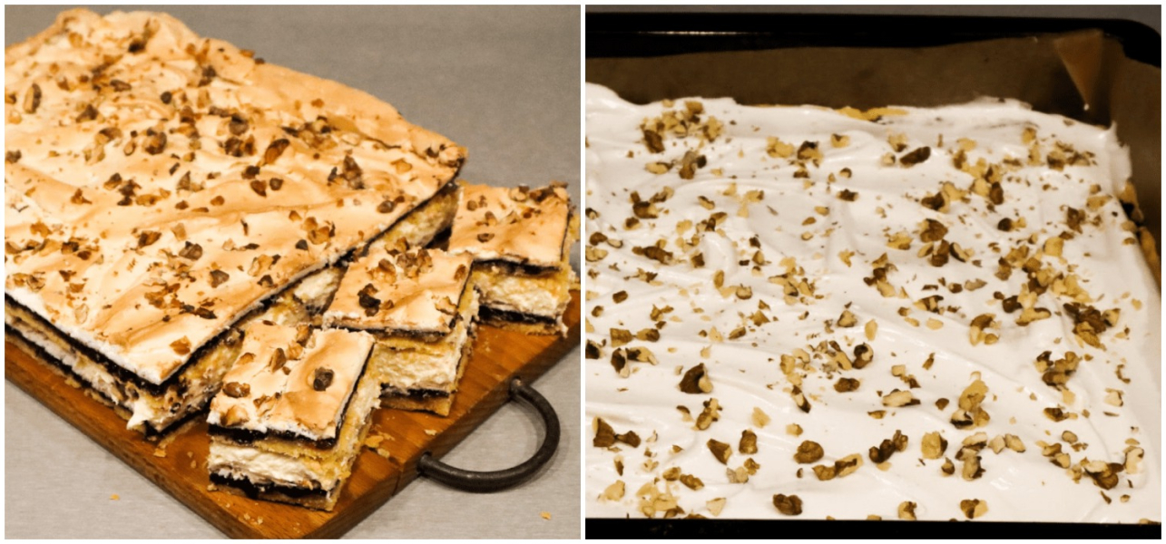 - Викладаємо тісто на деко зі смородиновим джемом, зверху викладаємо збиті білки і посипаємо горіхами. Випікати при температурі близько 180 градусів 10/15 хвилин.