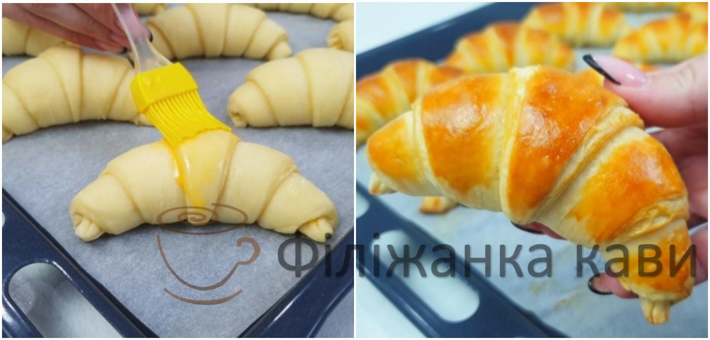 Перед випіканням змащуємо рогалики збитим яйцем.