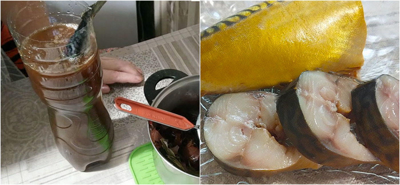 Всього через 1-2 дня ніжна на смак слабосолона скумбрія апетитного золотистого, як після копчення, кольору готова!
