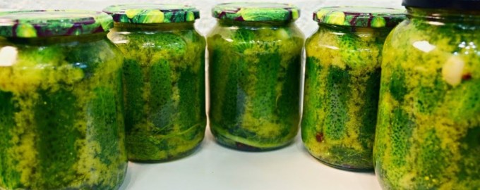 Гірчичний маринад надає огіркам особливого, пікантного смаку, вони виходять хрусткими, щільними, чудово підходять як закуска і для салатів.