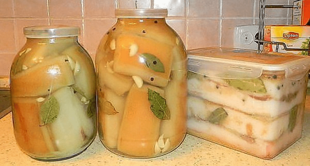 Розсіл: на 1 літр води висипаємо 1 склянка солі, додаємо 3-4 листочка лаврушки, перчик горошком і одну цибулину (я її очищаю) розсіл закип’ятити і через хвилинку заливаємо сало гарячим розсолом, ставимо гніт (під 3-х літрову банку з водою) .