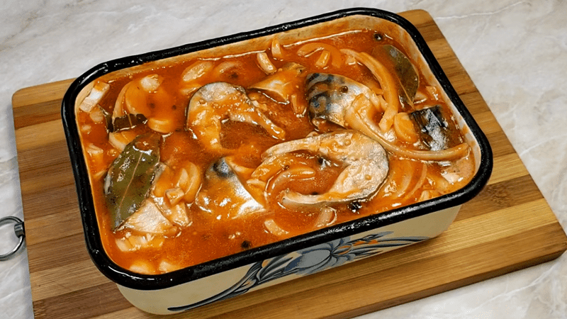 Заливаємо рибу маринадом і відправляємо в холодильник не менше, ніж на добу. Якщо з якихось причин маринаду не вистачає для того, щоб покрити рибу повністю, готуємо його додатково, але в меншому об’ємі просто витримуючи потрібну пропорцію.