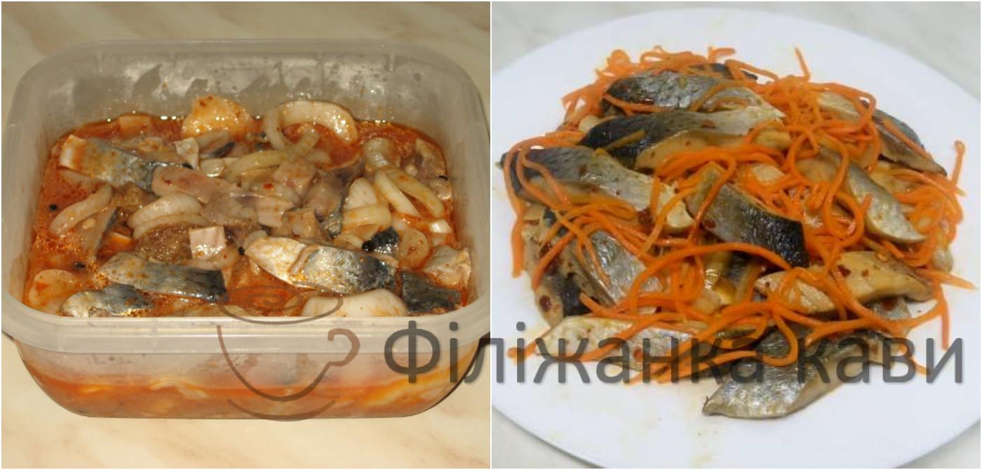 Якщо ви любите оселедець по-корейськи, то неодмінно повинні приготувати його за цим рецептом! Він виходить малосольний, маринований у смачному соусі на корейський манер.