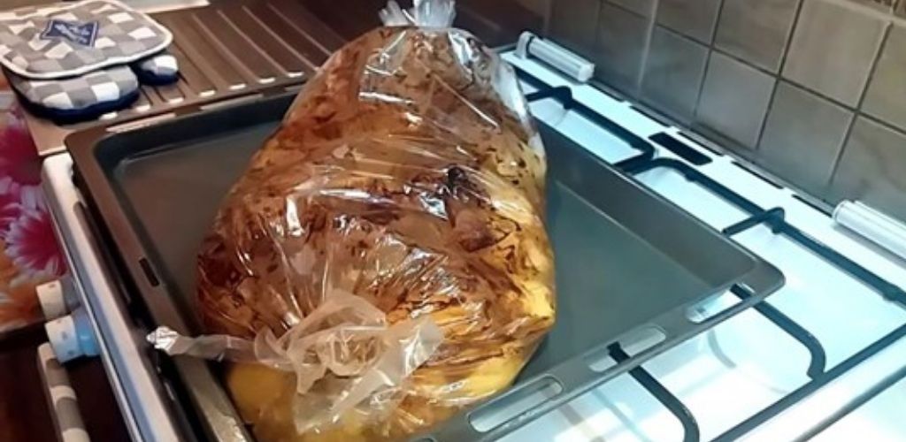 - Перекладіть рукав на деко і відправте в розігріту до 200 градусів духовку. Готуйте страву близько 15-20 хвилин. Після приготування посоліть і поперчіть за смаком.