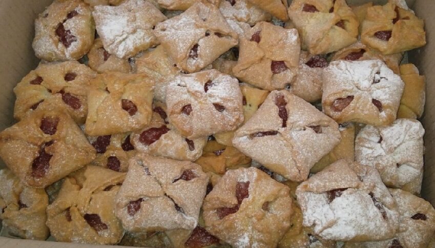 Тісто має вийти еластичне, не має прилипати до рук, і розкачуємо. Робимо конвертики, ставим густе повидло.