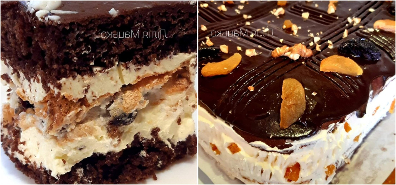 Шоколадний корж-крем-білковий корж-крем-шоколадний корж. Прикрашаємо за своїм вподобанням.