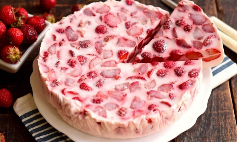 Рецепт літнього полуничного торта. Торт готується швидко, без випічки, виходить дуже легким, ніжним, з вираженим полуничним смаком. Цей желейний тор готується на сметано-сирній основі, яка просто чудово поєднується з полуницею.