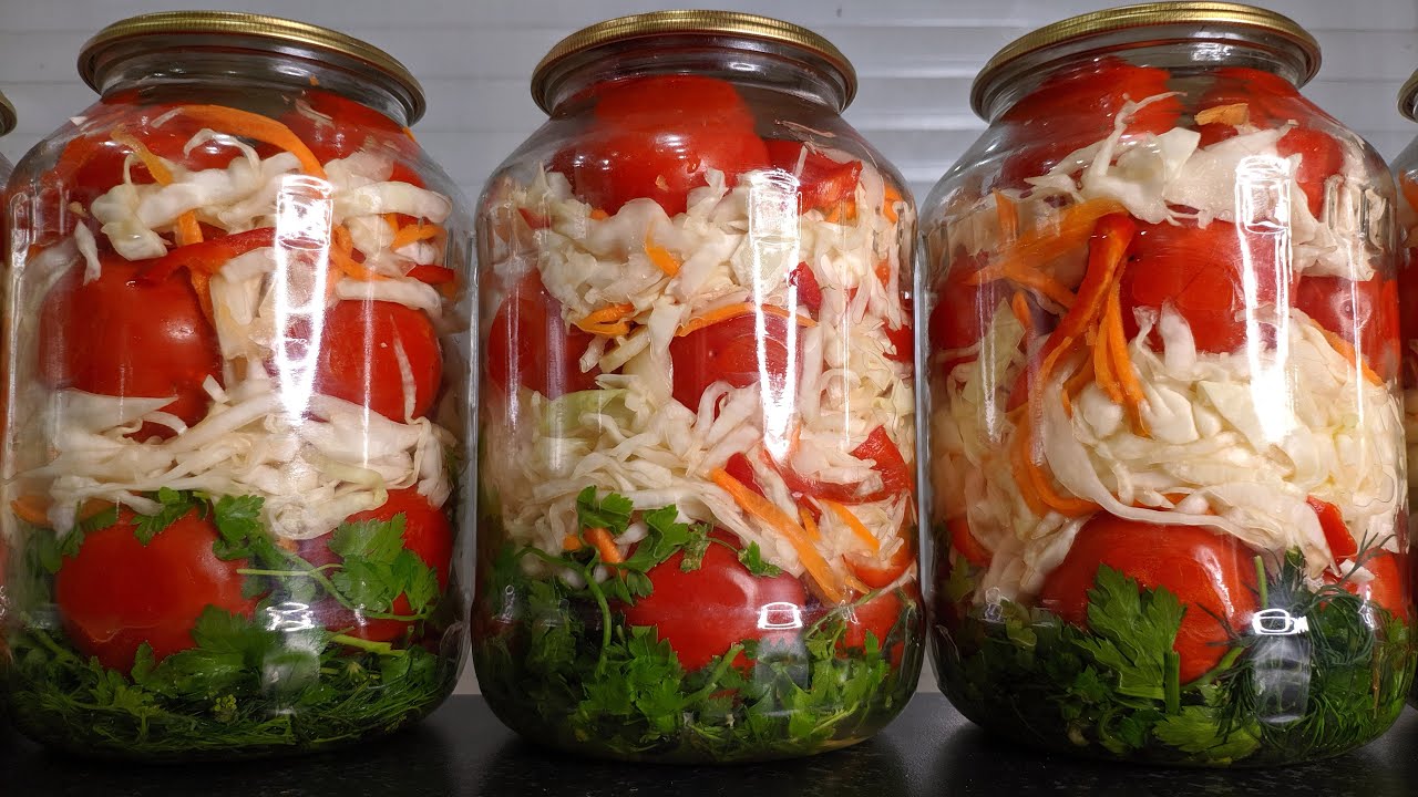 Помідори з капустою на зиму неймовірно смачні. Підкорюють одразу! Щільні та пружні помідори з хрусткою капустою – дуже рекомендую приготуйте! Зберігаються такі помідори з капустою добре при кімнатній температурі.
