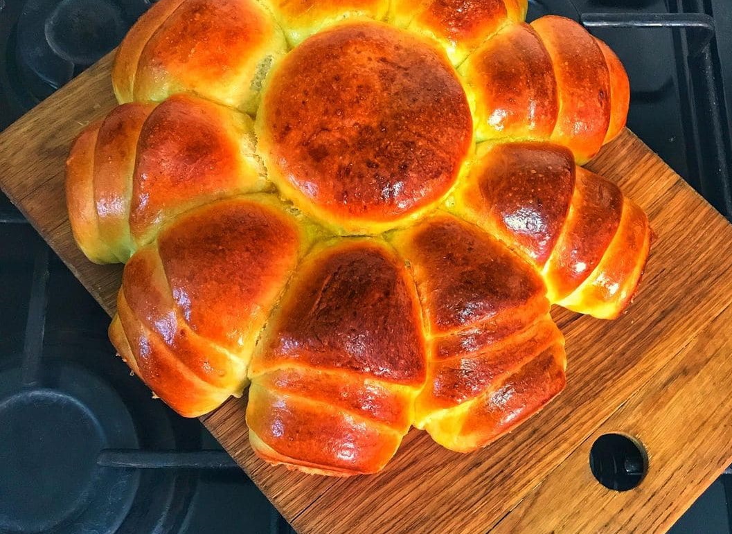 - В тепле молоко додати цукор та дріжджі. Потім додаємо сіль, яйце, та олію. Перемішуємо до однорідної маси та поступово додаємо борошно.