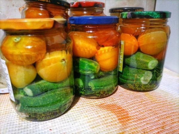 Продовжую ділитися з вами рецептами для консервацій, в цій статті розповім про рецепт маринованого асорті. За рецептом виходять не солоні, трохи солодкі огірки і помідори. Приємного читання!