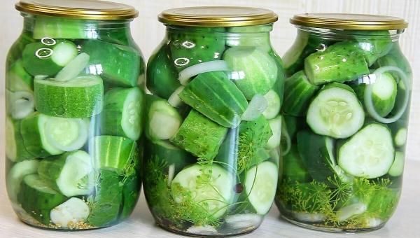 Мариновані огірочки, нарізані шматочками проста і дуже смачна заготівля на зиму. Огірки виходять хрусткими, ароматними і добре зберігаються в умовах квартири.