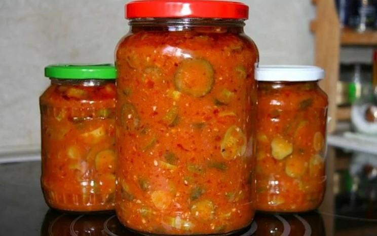 - Готовий салат розкласти по стерильним банкам, закатати кришки, перевернути вгору дном і укутати в ковдру. Залишити до повного остигання.
