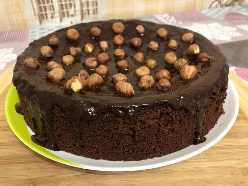 Охололий пиріг покриваємо ще теплою шоколадною глазур’ю.