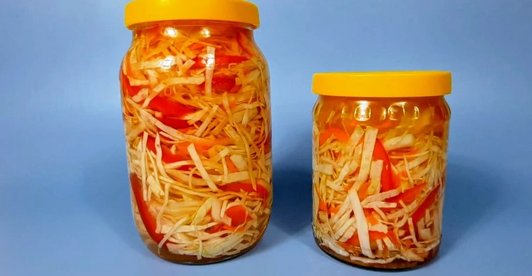6. Банки закриваємо капроновими кришками і прибираємо в холодильник на 12 годин. Через цей час капуста готова до вживання.