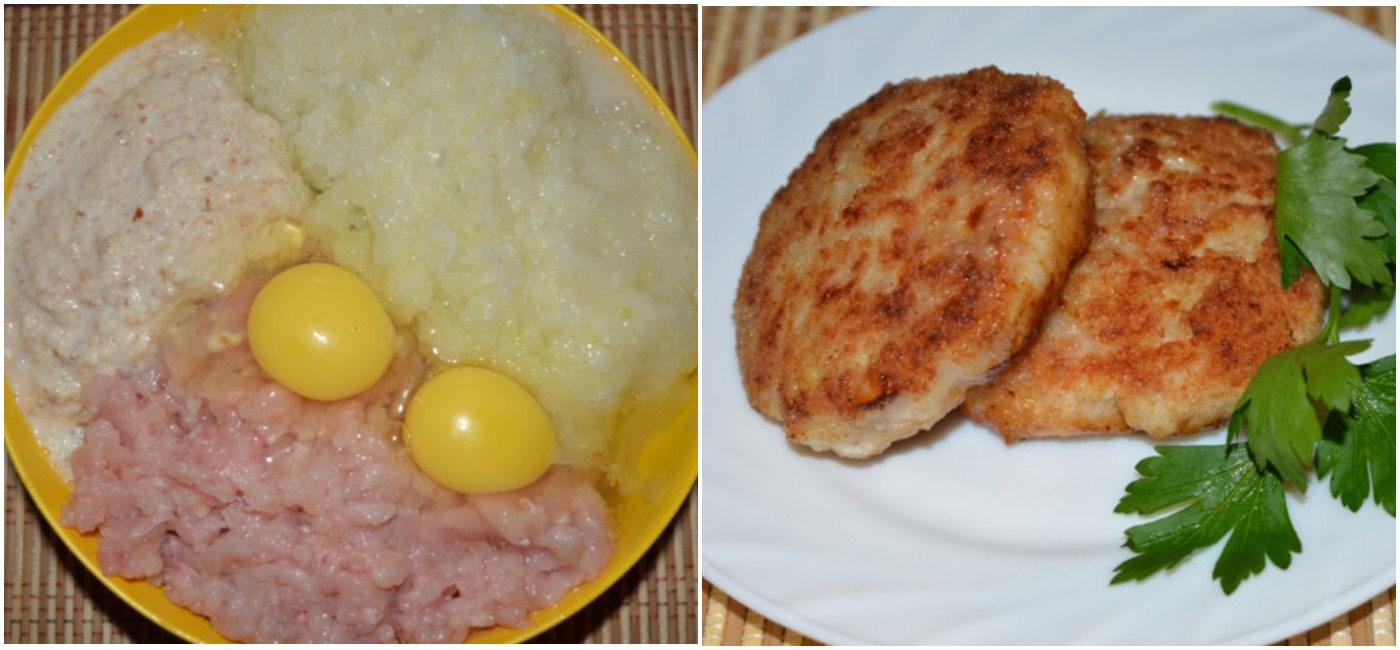 Як приготувати соковиті котлети з курячих грудок з манкою і цибулею
