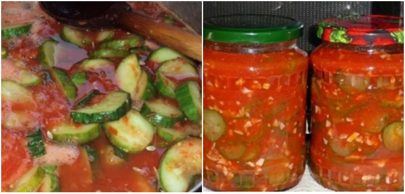 Щороку намагаюся приготувати хоча б кілька баночок такого салату з огірків за цим рецептом. Любителі похрумкати отримають справжнє задоволення від цього салатного розгуляю. Хрусткі огірочки в гострій томатній заливці – це щось.