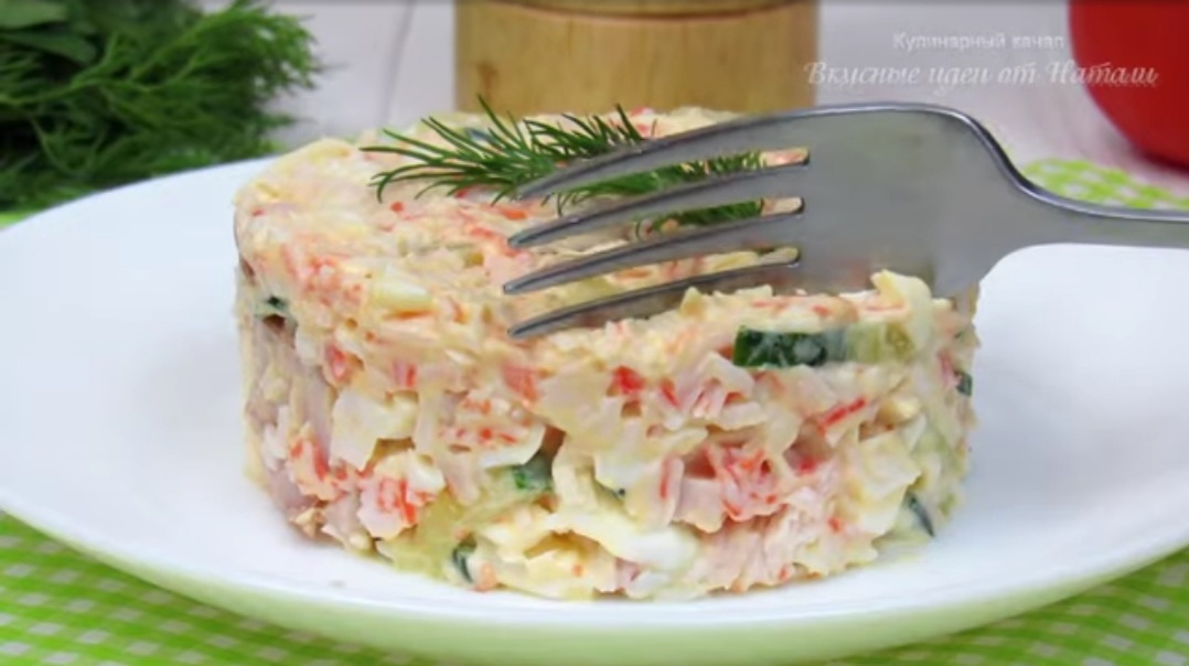 Дуже смачний і простий у приготуванні салат, хоч до святкового столу, хоч до вечері з крабовими паличками і копченою грудкою. Мій улюблений рецепт.