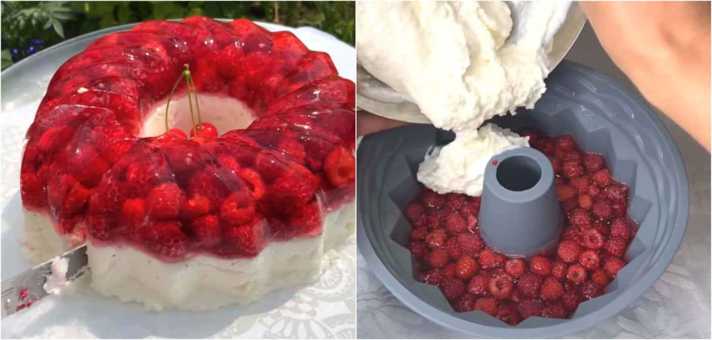 Заливаємо малину охолодженим желе і прибираємо застигати в холодильник, можна в морозилку на хвилин 15, щоб швидше!