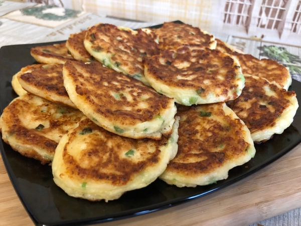 Зелену цибулю дрібно нарізаємо і додаємо в тісто. Тісто можна також злегка поперчити.