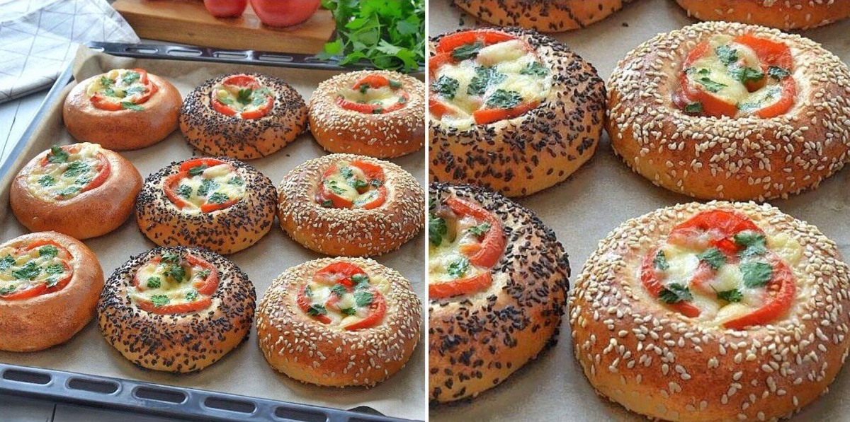 - Змастити заготовки жовтком змішаним із 1 ст. ложкою молока, посипати кунжутом. У середину булочок покласти будь-яку на Ваш смак начинку.