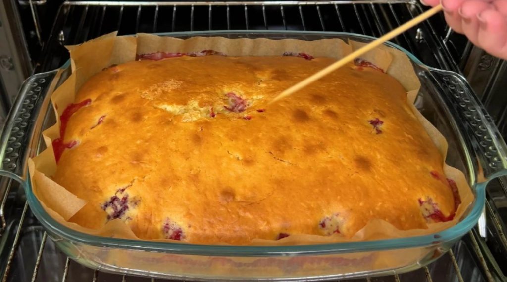 У цей пиріг можна додавати свіжі або заморожені, консервовані ягоди, шматочки фруктів та сухофрукти. Тісто з невеликого набору продуктів виходить повітряним та м’яким, пишним.