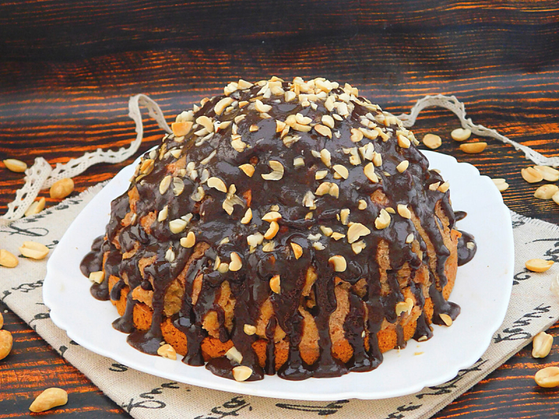 7. За кілька годин до подачі дістати торт, щоб він встиг зігрітися і трохи розм’якшити. Полити розтопленим шоколадом ( 50 м темного шоколаду розтопити на водяній бані і додати пару столових ложок молока ). Прикрасити за бажанням. Торт “Їжа богів” виходить м’яким і дуже смачним.