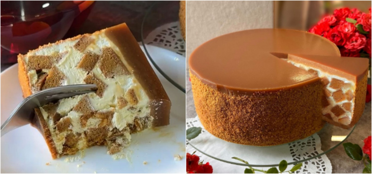 Торт покритий подвійною порцією карамельного мусу, але однієї порції достатньо.