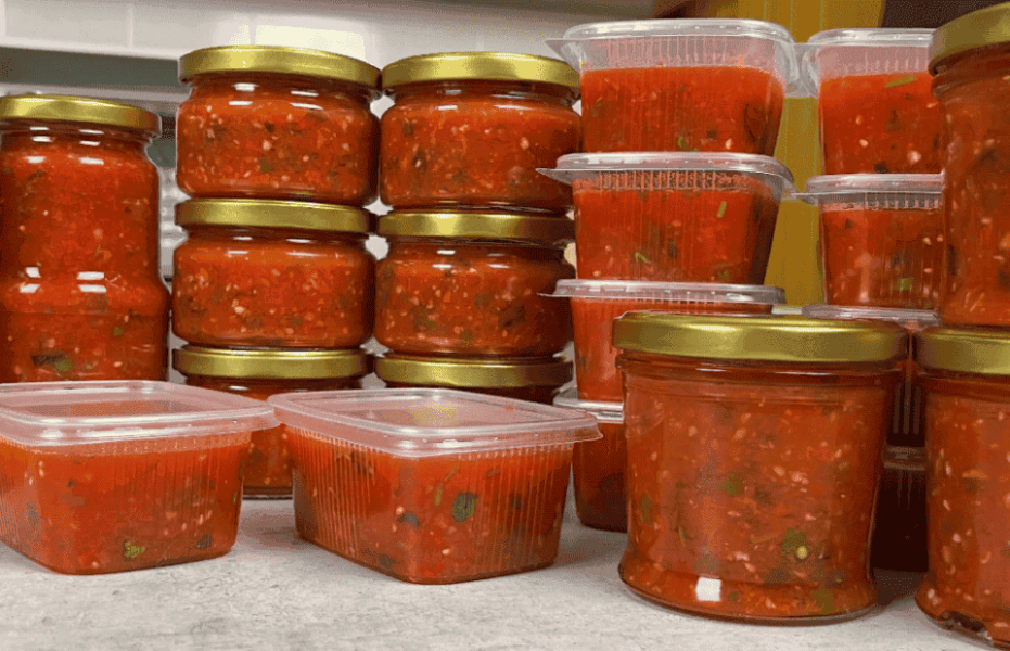 Такий соус я ще й заморожую. Для цього я готовий соус розкладаю по контейнерах. Мої контейнери об’ємом 250 мілілітрів, для мене це найзручніший об’єм.