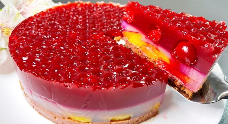У цьому торті замість желатину використовується агар-агар, але якщо його немає, звичайний желатин не зіпсує смаку. Ягоди і фрукти беріть на свій смак, не обов’язково суворо дотримуватися рекомендацій рецепту.