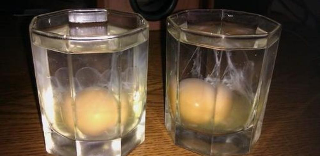 Для початку треба викатати яйцем все тіло, від голови до ніг, уявляючи собі, як негативна енергія тіла витягується в яйце. Після цього розбийте яйце і вилийте в наполовину повну склянку води. Зачекайте пару хвилин.