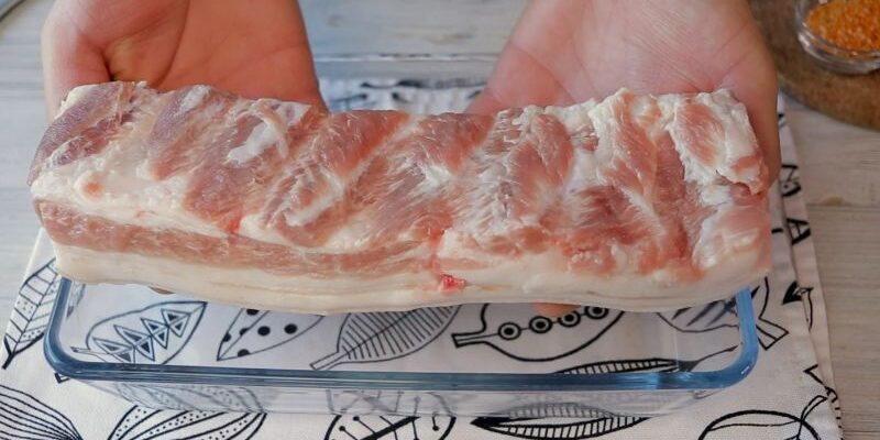 За допомогою цього рецепту можна приготувати м’яке та приємне сало з м’ясним прошарком. Його можна потім зберігати в морозильній камері або закатати в скляні банки, які зберігають у підвалі або в холодильнику.
